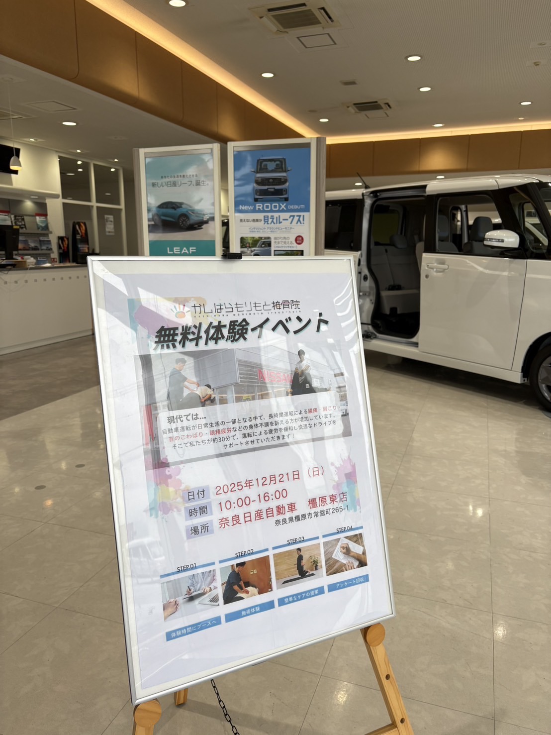 先日の日曜日に開催した、奈良日産自動車橿原東店様での施術体験会。